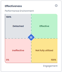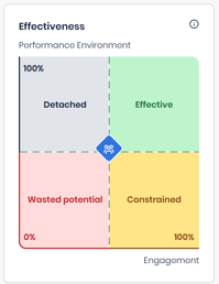 This matrix shows the performance environment of the respective team. A performance environment score shows how effective a group is in reaching their goals, staying innovative and dealing with change. By clicking on the tile, you receive more information on where you stand and what to focus on to further improve yourself as a team or group.