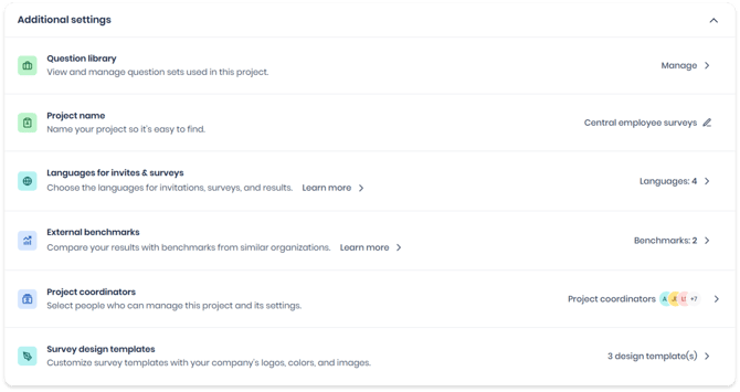 Participant pool: Select and manage the employees included in this project. This defines who can be invited to surveys. Learn more about participant selection here.