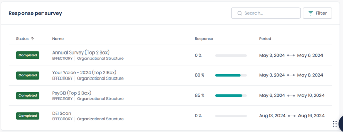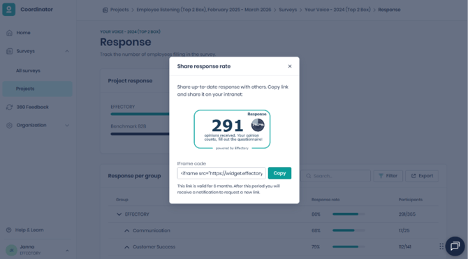 You can view or embed a response rate widget directly from My Effectory to share participation progress on your intranet or internal dashboards.